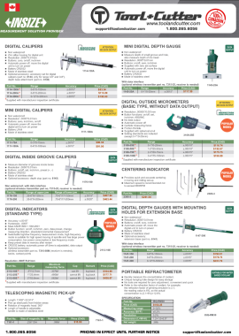 1 Page Flyer - Great Prices on Select Precision Measuring Tools From Insize Canada. Pricing is Valid Until Further Notice.